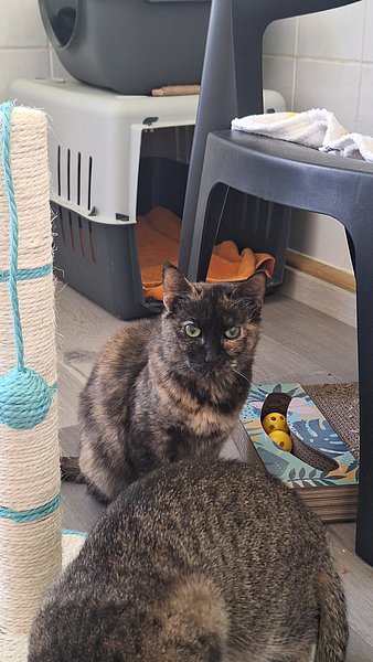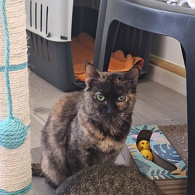Da sie sich mit Bienchen und Püppy bisher gut versteht, könnte sie bei Interesse auch mit einer der Katzen oder beiden gemeinsam ausziehen.